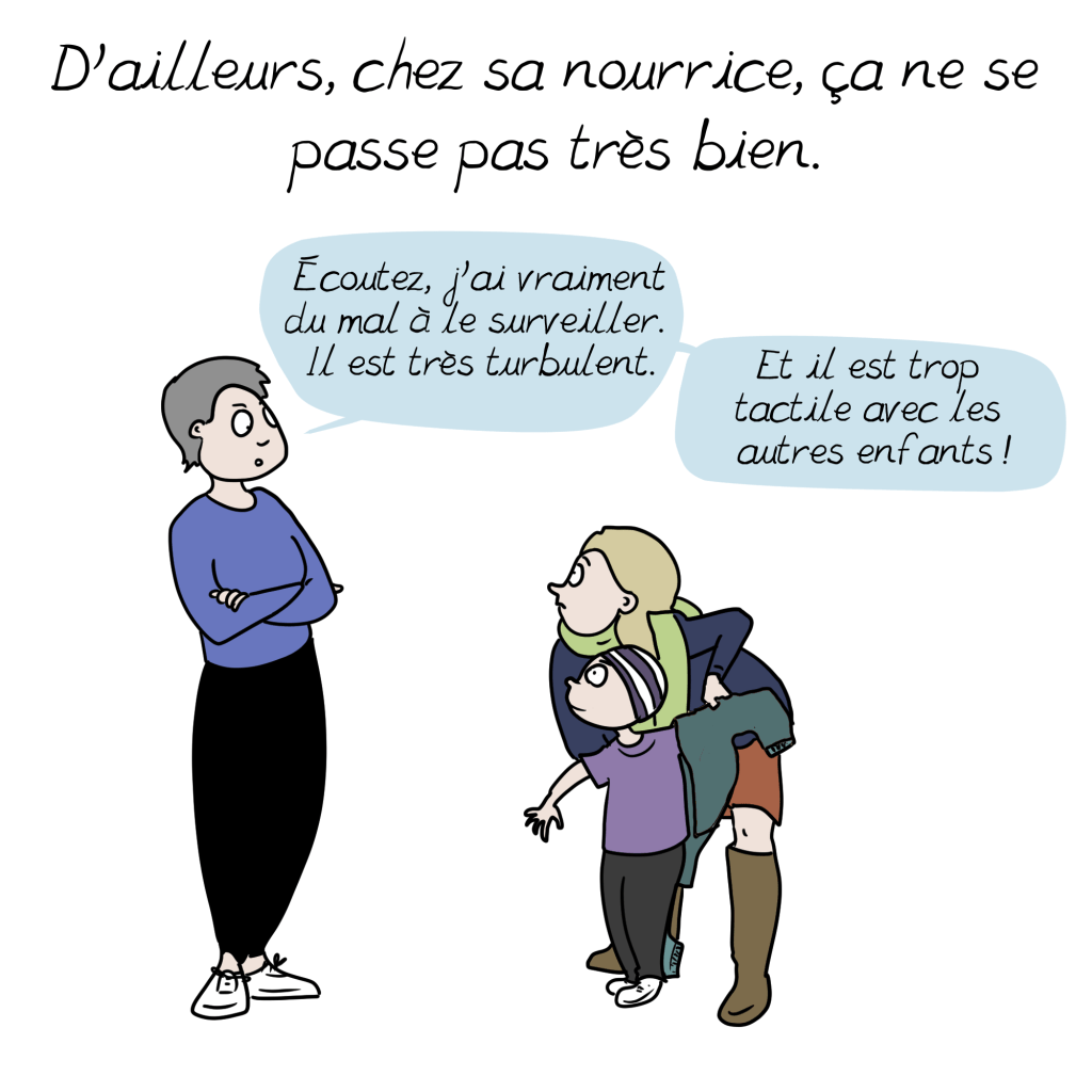 En tout cas, je me retrouve dans ces histoires : j’aurais aimé pouvoir lire cette BD (merci Emma) il y a 5 ou 6 ans, quand j’ai essayé de consulter pour mon fils et que je me suis heurtée à des murs. Avec effectivement au moins autant de questions sur moi que sur mon enfant (héritage de la psychanalyse). Si on m’avait dit « faites-vous confiance, les parents ont généralement raison », je ne me serais pas laissé faire, je n’aurais pas attendu avant de reconsulter, j’aurais contacté Hyper-super et je n’aurais pas eu 5 ans de retard de diagnostic, ce qui signifie une vraie perte de chances pour l’enfant, et beaucoup de souffrances familiales.