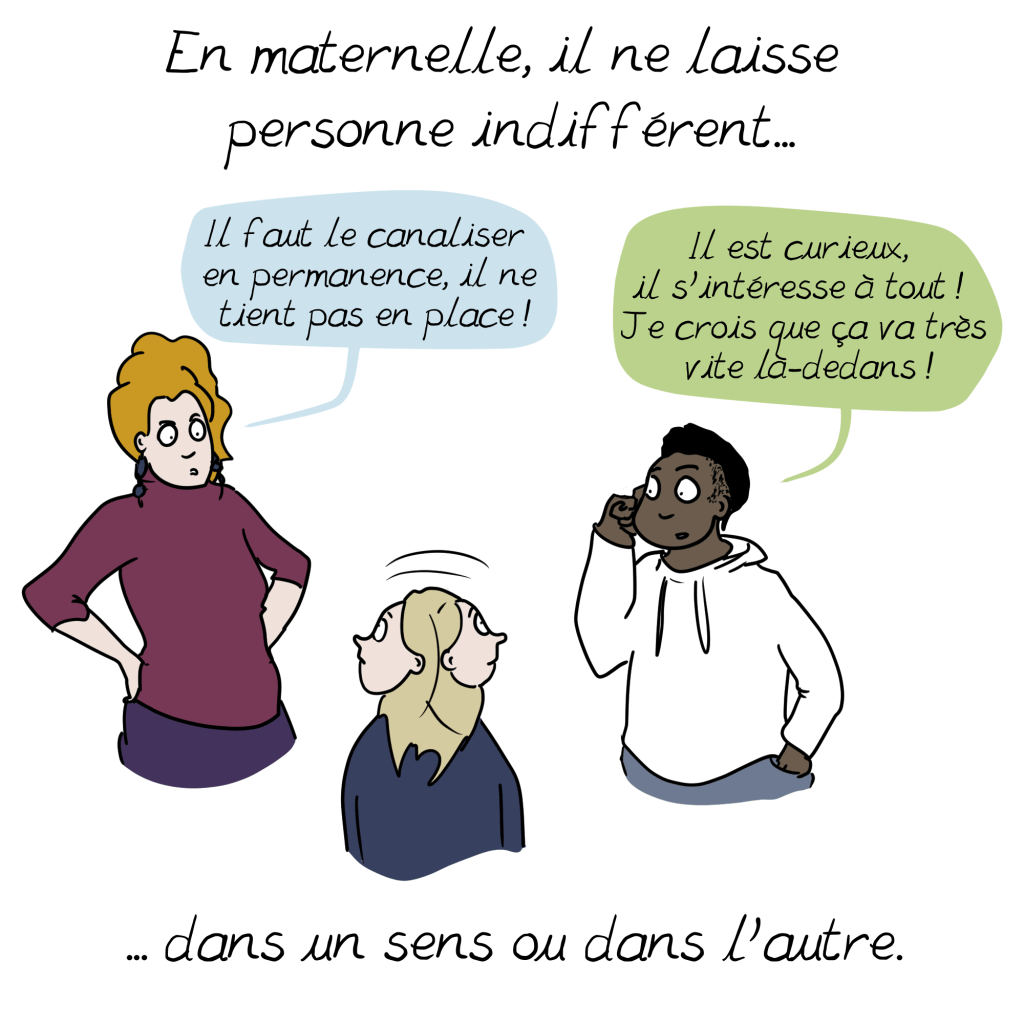 J’ai beaucoup pensé à un de mes élèves… Pas encore de diagnostic, mais plein de choses nous mettent la puce à l’oreille. En attendant, on a pu adapter un peu l’école, et c’set plus apaisé pour lui (il ne se fait plus autant gronder, il peut apprendre), pour la classe (il n’y a plus d’interruptions) et pour moi l’enseignante (on n’est plus dans un rapport de « grondeur/grondé »). C’est super de mesurer ses progrès et d’avoir une autre relation avec lui 🙂