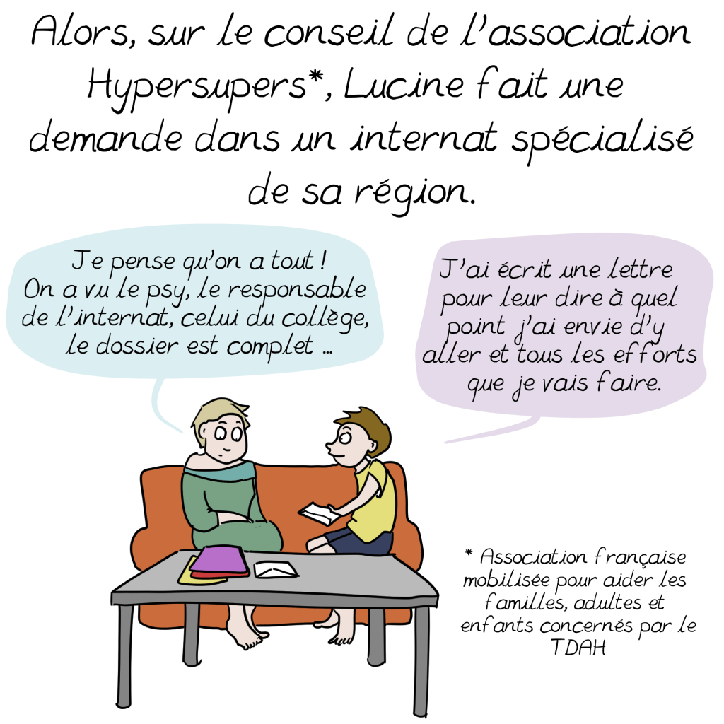 Merci aussi à l’association Hypersupers, et notamment Catherine Langlet et Christine Getin, pour leur travail bénévole indispensable, toutes les sources qu’elles m’ont envoyées, et la mise en contact avec les personnes qui ont témoigné. Vous pouvez les trouver ici https://www.tdah-france.fr/