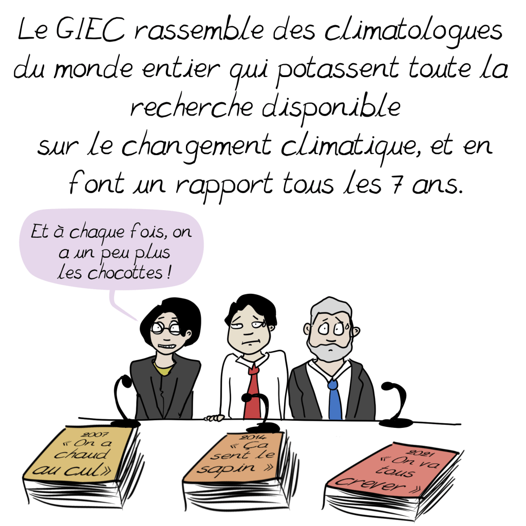 merci beaucoup. Je travaille dans l’environnement, dans un domaine où, chaque jour, de nouvelles informations et constatations de terrain viennent confirmer les conclusions du GIEC. Je dois avouer, que j’ai rarement lu une retranscription aussi claire et pédagogique de la problématique.