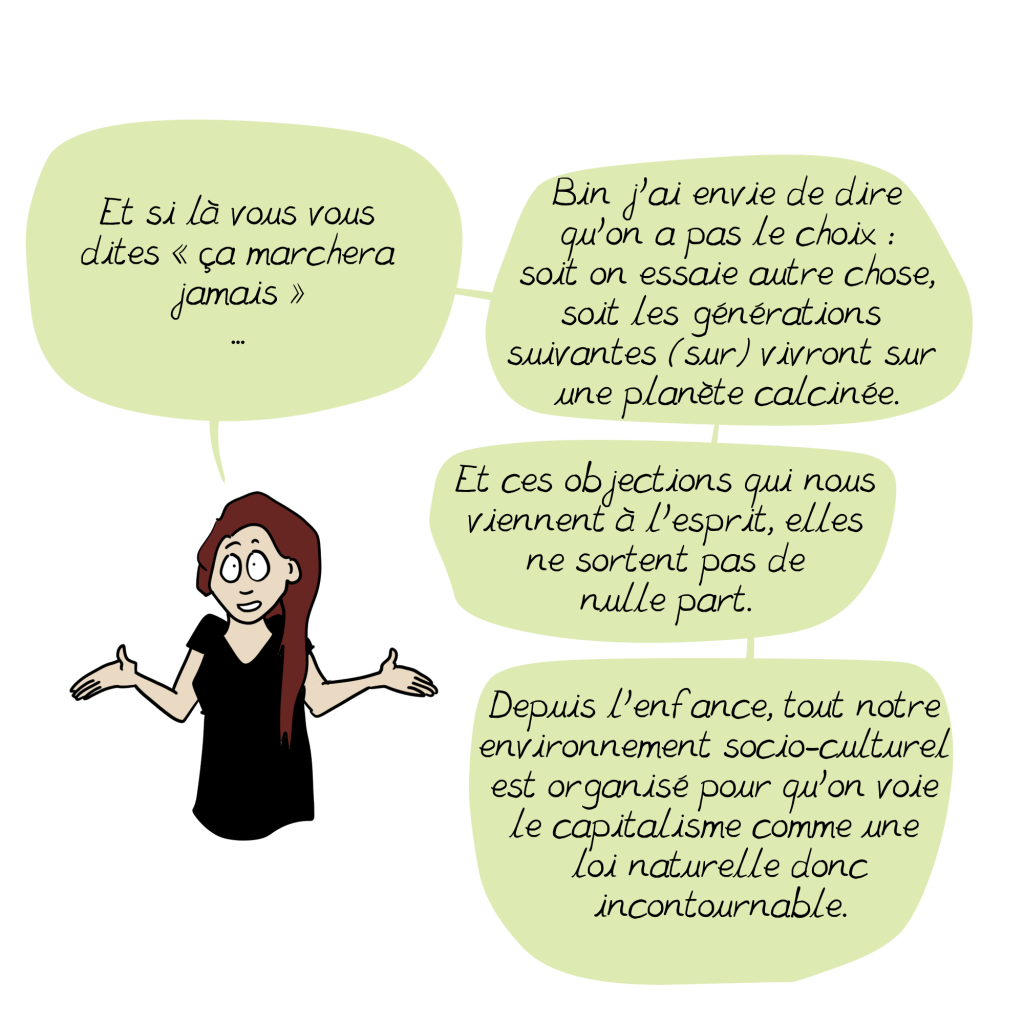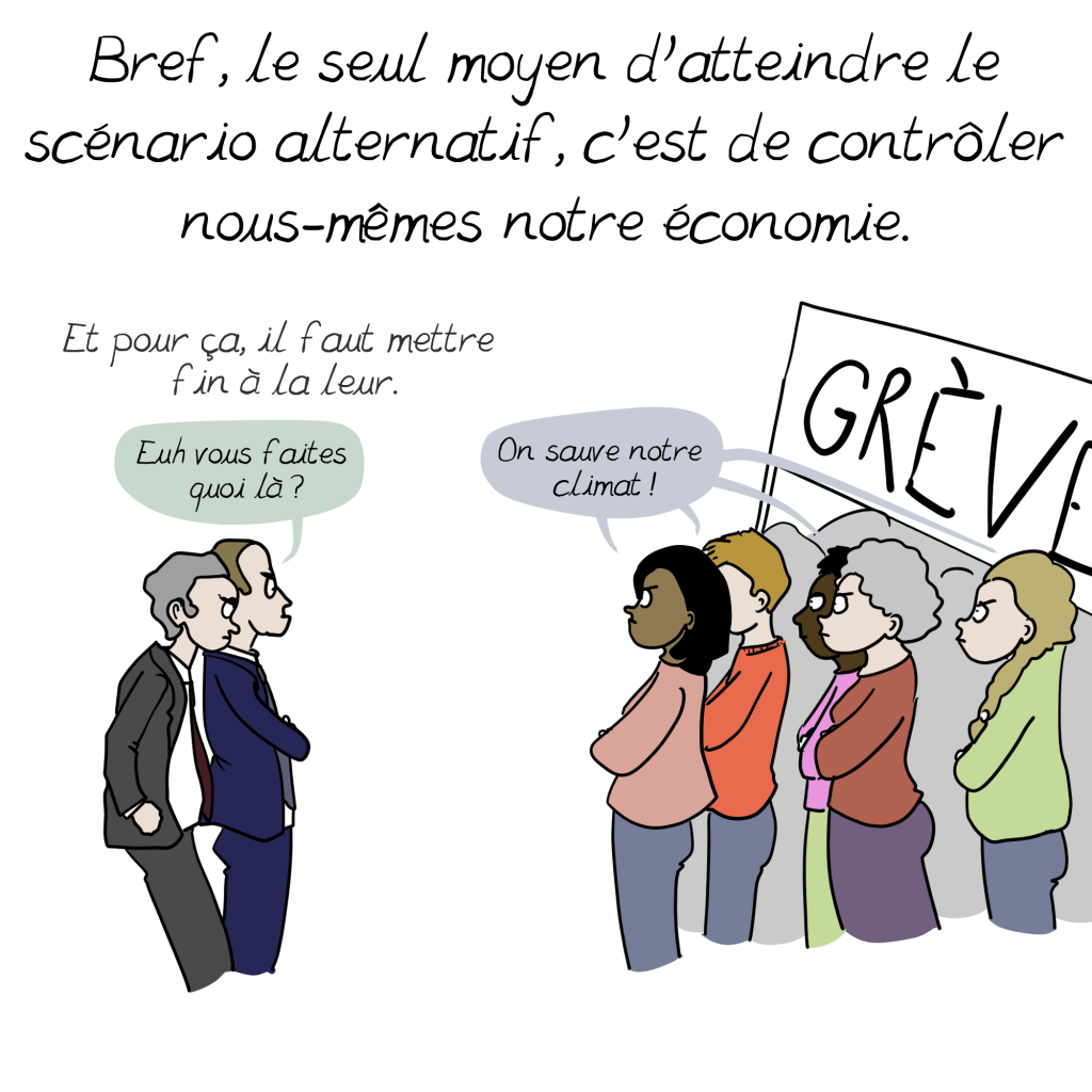 Le lien avec l’économie et en particulier avec le système capitaliste basé sur l’exploitation des ressources (environnementales et humaines) est effectivement très fort. La capitalisation ne peut en effet exister qu’en exploitant l’énergie d’un tiers (fossiles, esclaves,…). La solution climatique sera intimement liée à une juste répartition des richesses, notamment par la redistribution sous forme de services publics (environnementaux, sanitaires, sociaux, culturels,…) seuls garants d’une réelle égalité.