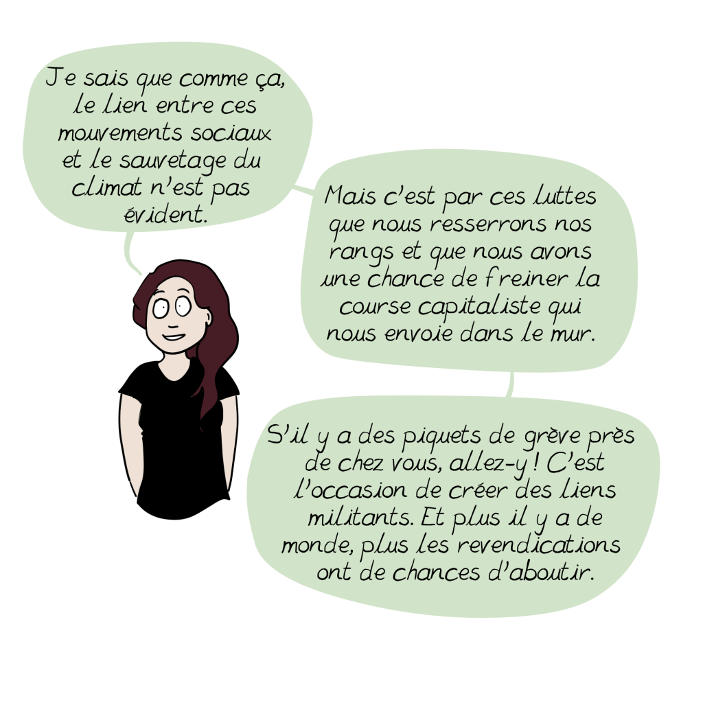 Pour cette BD, je me suis largement appuyée sur le travail de Daniel Tanuro, ingénieur écosocialiste qui avait eu la gentillesse de faire la préface de mon hors série sur le climat. Il a écrit un deuxième super bouquin que vous pouvez vous procurer ici https://www.editionstextuel.com/…/trop_tard_pour_etre…