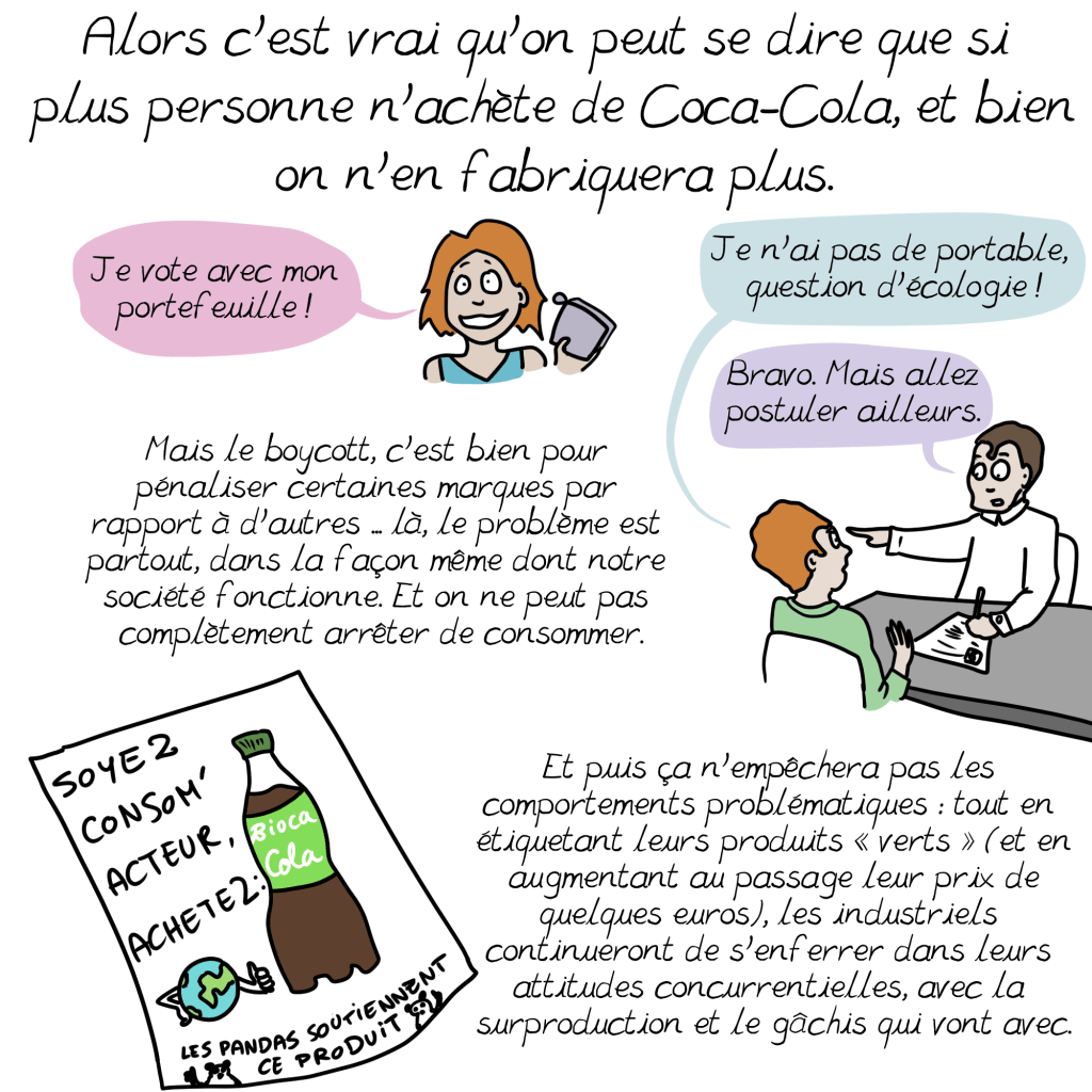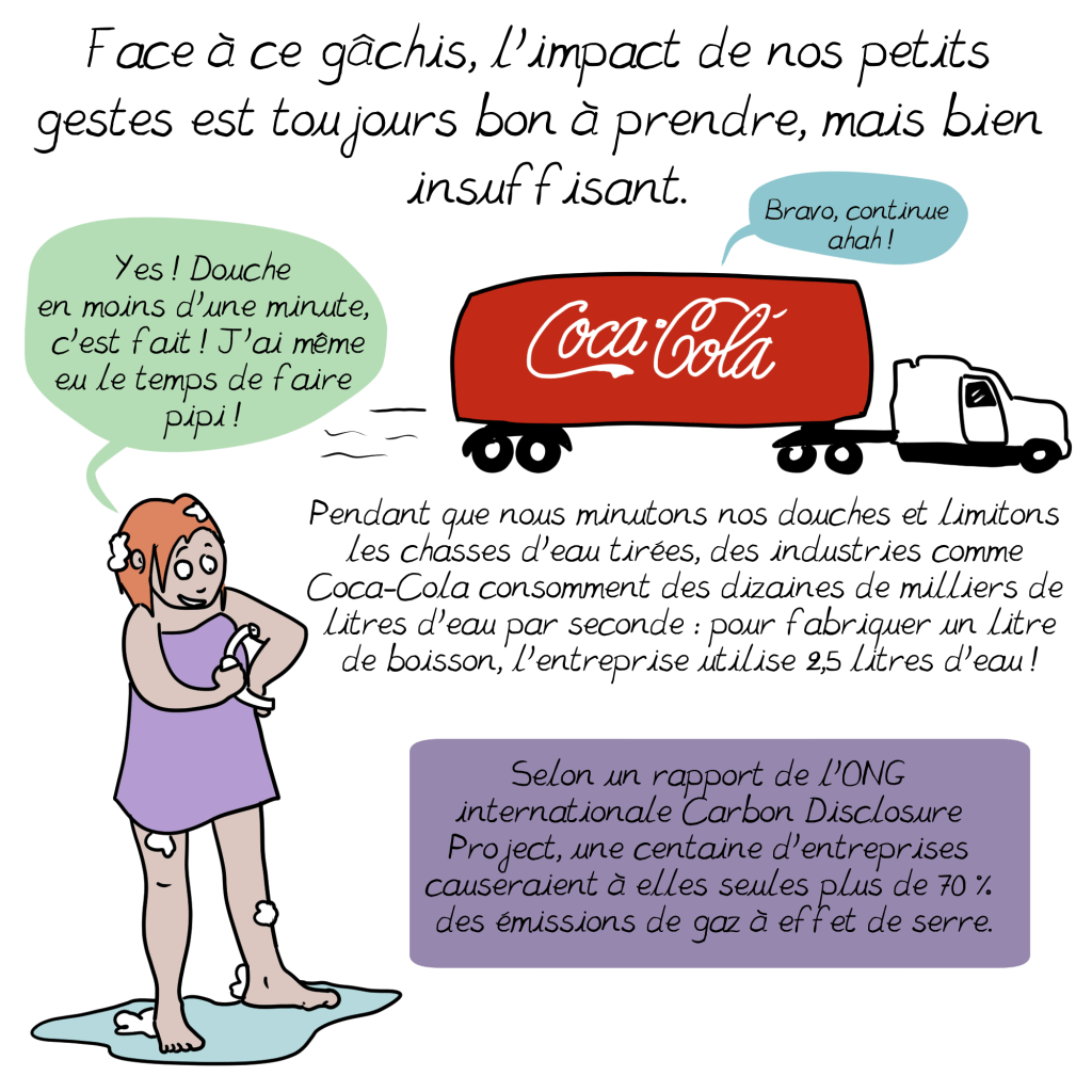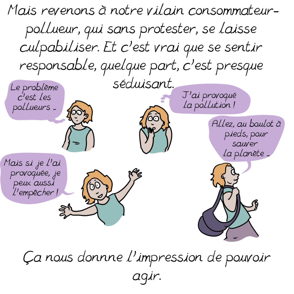 Je crains toutefois que beaucoup d’individus se découragent ou justifient leur surconsommation en disant que ce sont de petits riens par rapport à ce que polluent les entreprises…