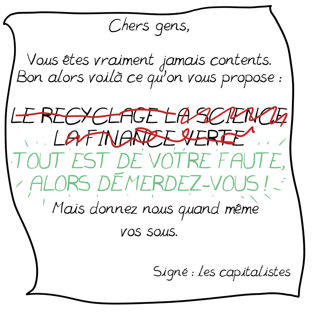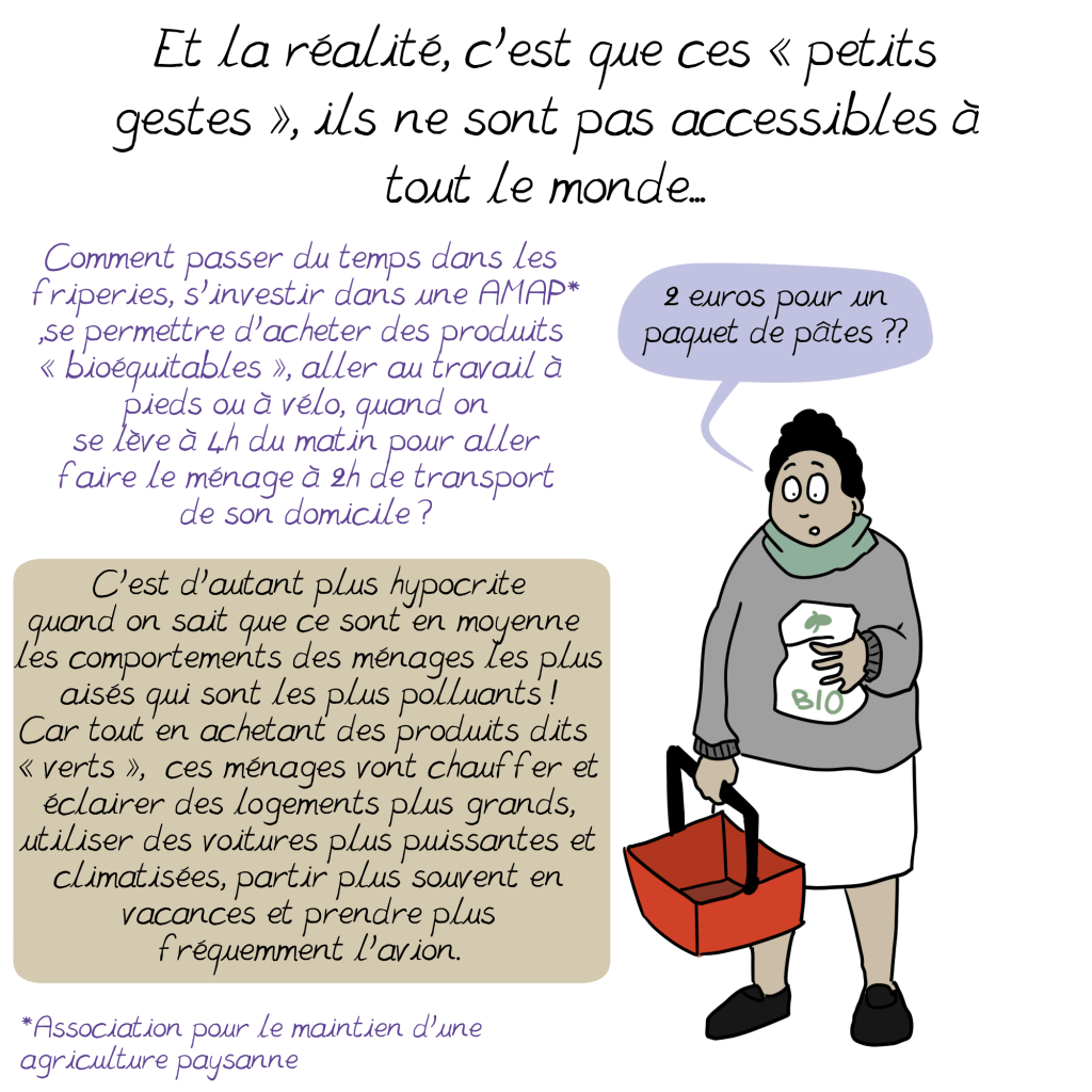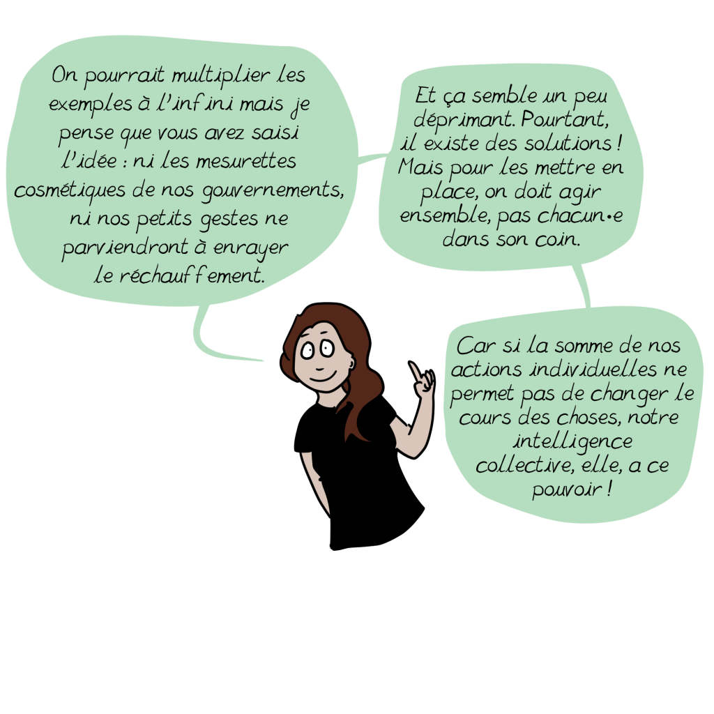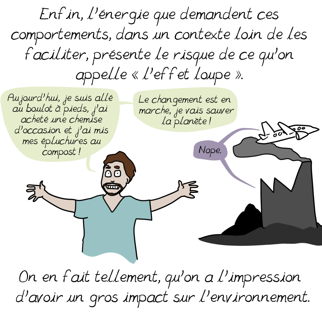 Je crains toutefois que beaucoup d’individus se découragent ou justifient leur surconsommation en disant que ce sont de petits riens par rapport à ce que polluent les entreprises…