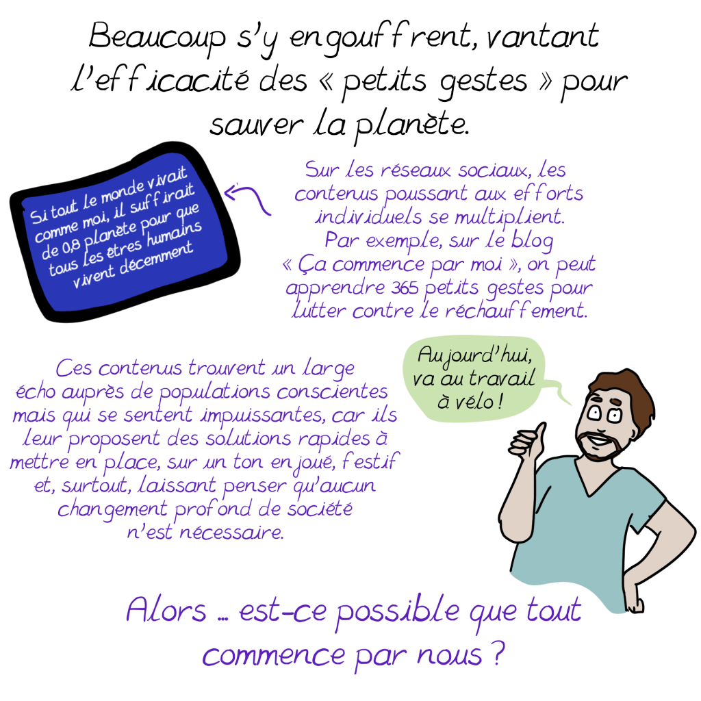 Sur ce sujet en particulier, un autre regard intéressant : https://bonpote.com/les-actions-individuelles-comptent-elles-vraiment-pour-25-des-emissions/
